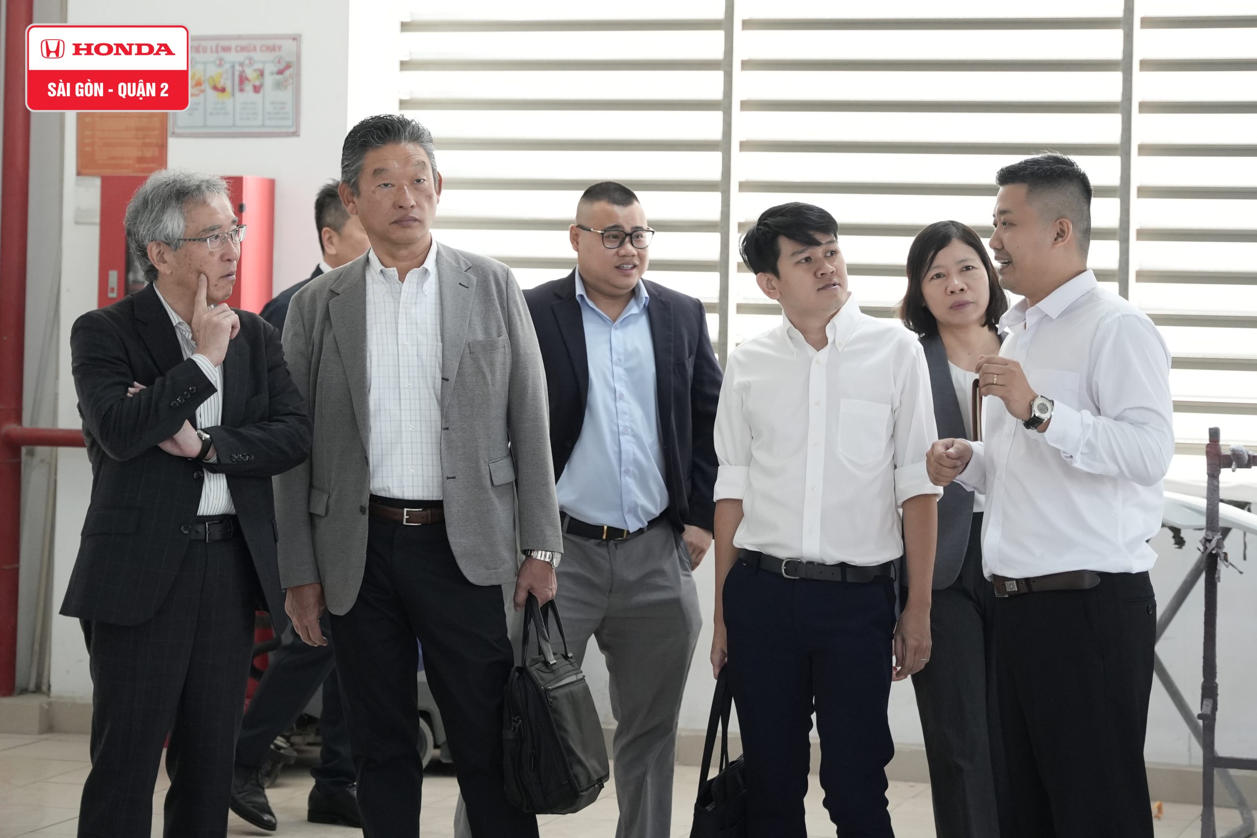 Trong khuôn khổ buổi làm việc, đoàn Honda Việt Nam đã trực tiếp tham quan showroom, tìm hiểu mô hình vận hành, quy trình quản lý và công tác chăm sóc khách hàng tại Honda Ô tô Sài Gòn – Quận 2. Bên cạnh đó, hai bên đã có những trao đổi chuyên sâu về công tác quản trị, vận hành và định hướng phát triển, hướng tới việc chuẩn hóa dịch vụ theo tiêu chuẩn quốc tế của Honda.